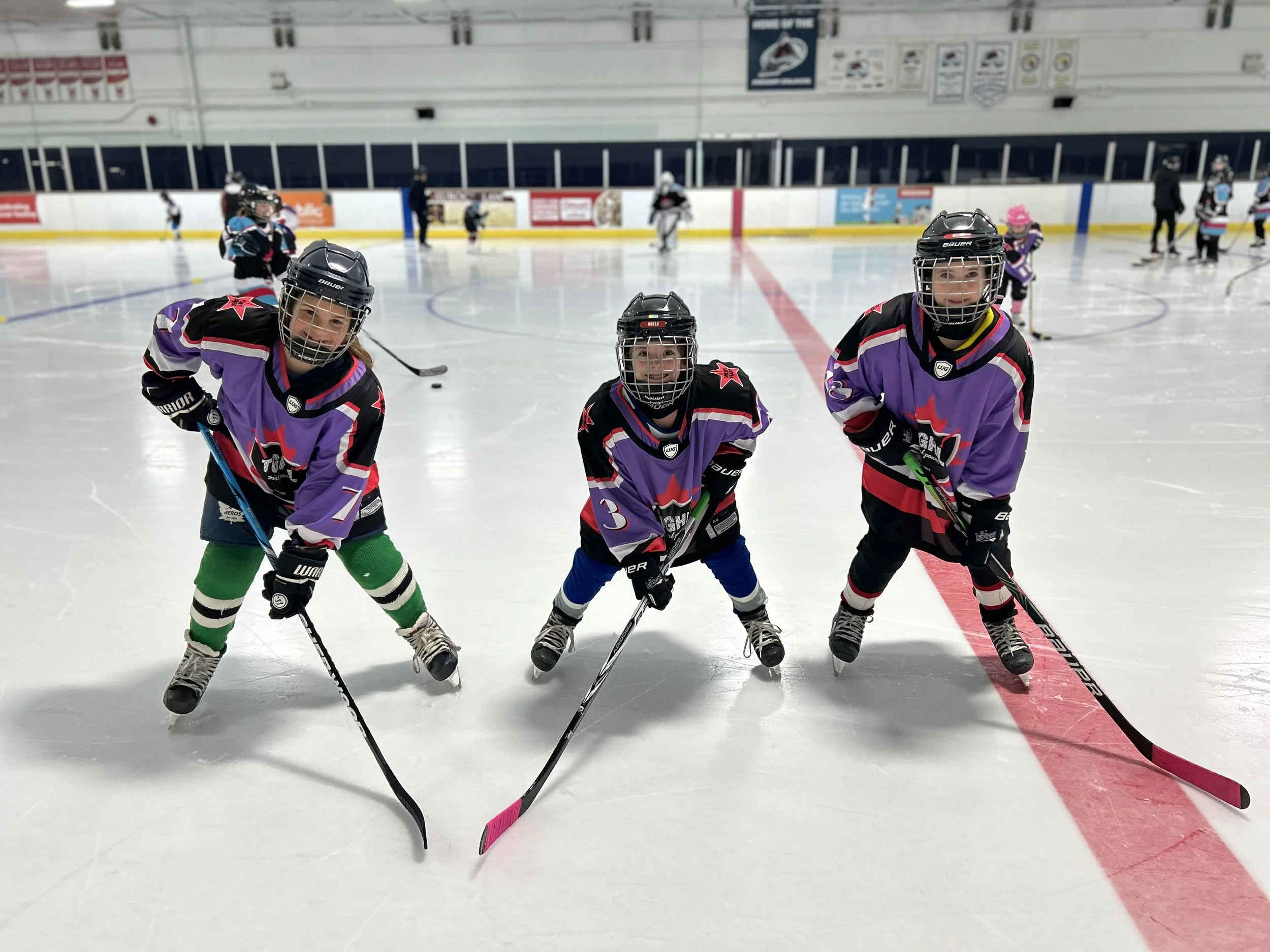 Weekly ice sessions include professional instruction in hockey’s basic skills, scrimmages/games, fun and camaraderie.